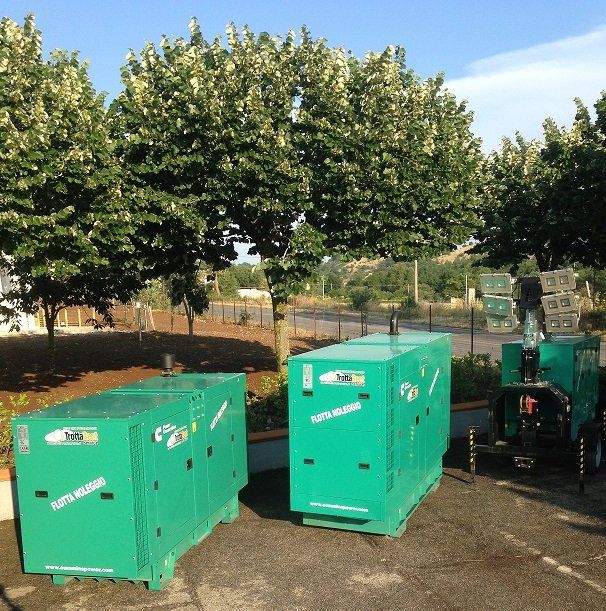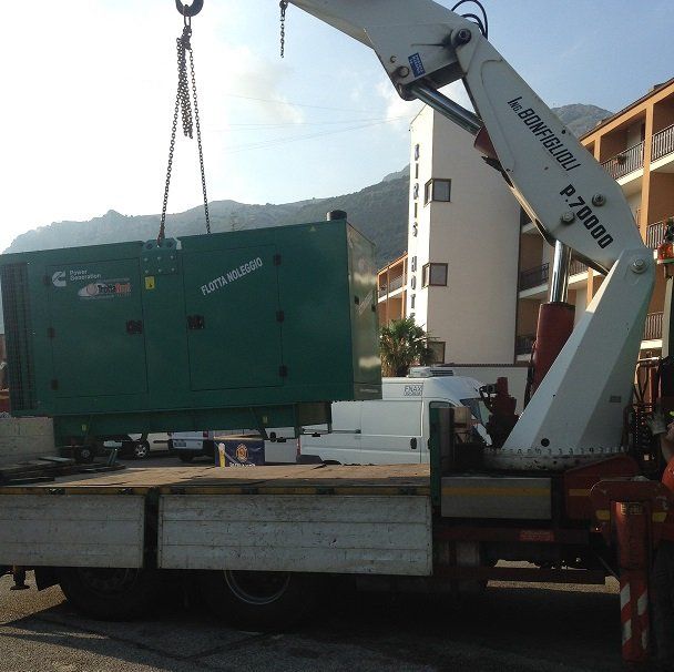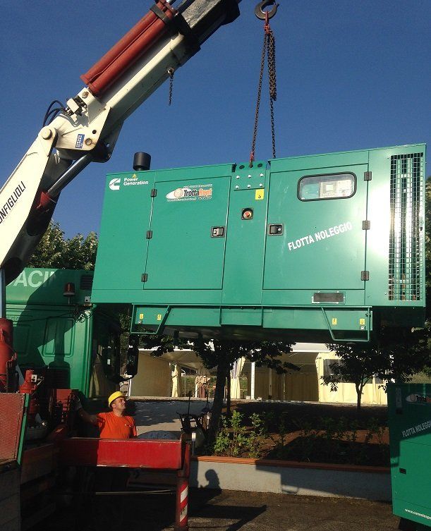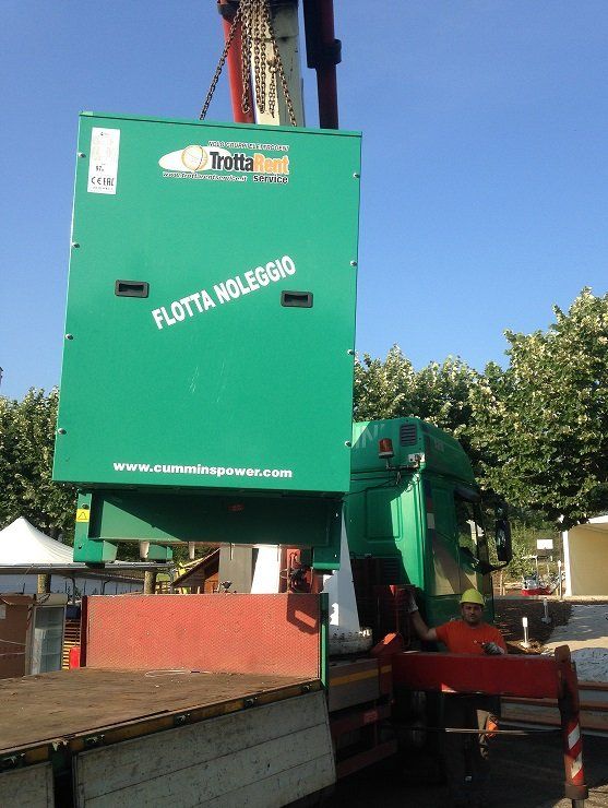 La nostra flotta noleggio è composta da circa 200 macchine, di cui la maggior parte gruppi elettrogeni, di taglia dai 5 KVA fino ai 2000 KVA di taglie differenti e per diverse applicazioni, di cui parecchi sempre disponibili su camion con gru per il pronto intervento. Abbiamo anche bi-gruppi super-silenziati in parallelo l’uno con l’altro e gruppi super-silenziati specifici per eventi. Abbiamo gruppi elettrogeni in linea con le più recenti normative in campo di inquinanti gassosi e rumore ambientale. Utilizziamo autocarri muniti di gru autonoma per la movimentazione carico/scarico di grande portata.